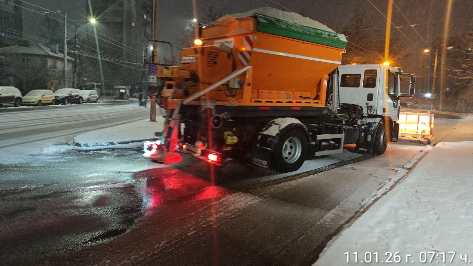 130 снегорина остават в готовност за работа в Столична община през днешния ден.  Това каза директорът на Столичния инспекторат Николай Неделков. През нощта в готовност да почистват урбанизираната територия в Столичната община, двата пътя в природен парк „Витоша“, както и Южната дъга на Околовръстния път са били 166 снегорина.  Първата обработка през нощта е  започнала от районите, чиито квартали се намират във високите части на града – „Витоша, „Банкя“, „Овча купел“ и „Панчарево“. Със соли против заледяване са обработени улиците, по които се движи масовият градски транспорт, а във „Витоша“ и „Панчарево“ са извършени обработки и по улици с обществена значимост и проблемни участъци от вътрешно-кварталните улици.