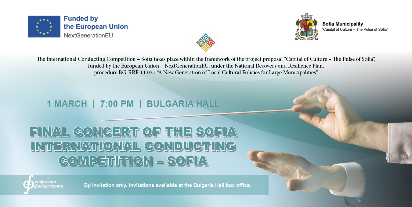 The International Conducting Competition – Sofia takes place within the framework of the project proposal “Capital of Culture – The Pulse of Sofia”, funded by the European Union – NextGenerationEU, under the National Recovery and Resilience Plan, producer BG-RRP-11.021 “A New Generation of Local Cultural Policies for Large Municipalities”