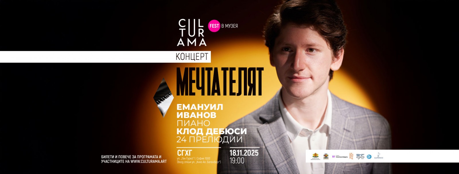 Младият български пианист с международна кариера Емануил Иванов ще представи интеграл на двата тома на Прелюдиите на Клод Дебюси. Концертът е рядък шанс за публиката да чуе цялото това монументално произведение в едно изпълнение, превръщащо музикалното пътешествие в интимна среща със света на композитора.
