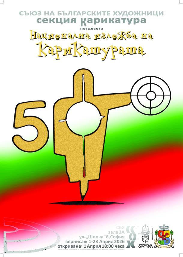 На 1 април от 18:00 ч. в зала 2А на СБХ – "Шипка" № 6 се открива юбилейното издание на Националната изложба на българската карикатура – един от най-старите и значими формати на Съюз на българските художници – секция "Карикатура".