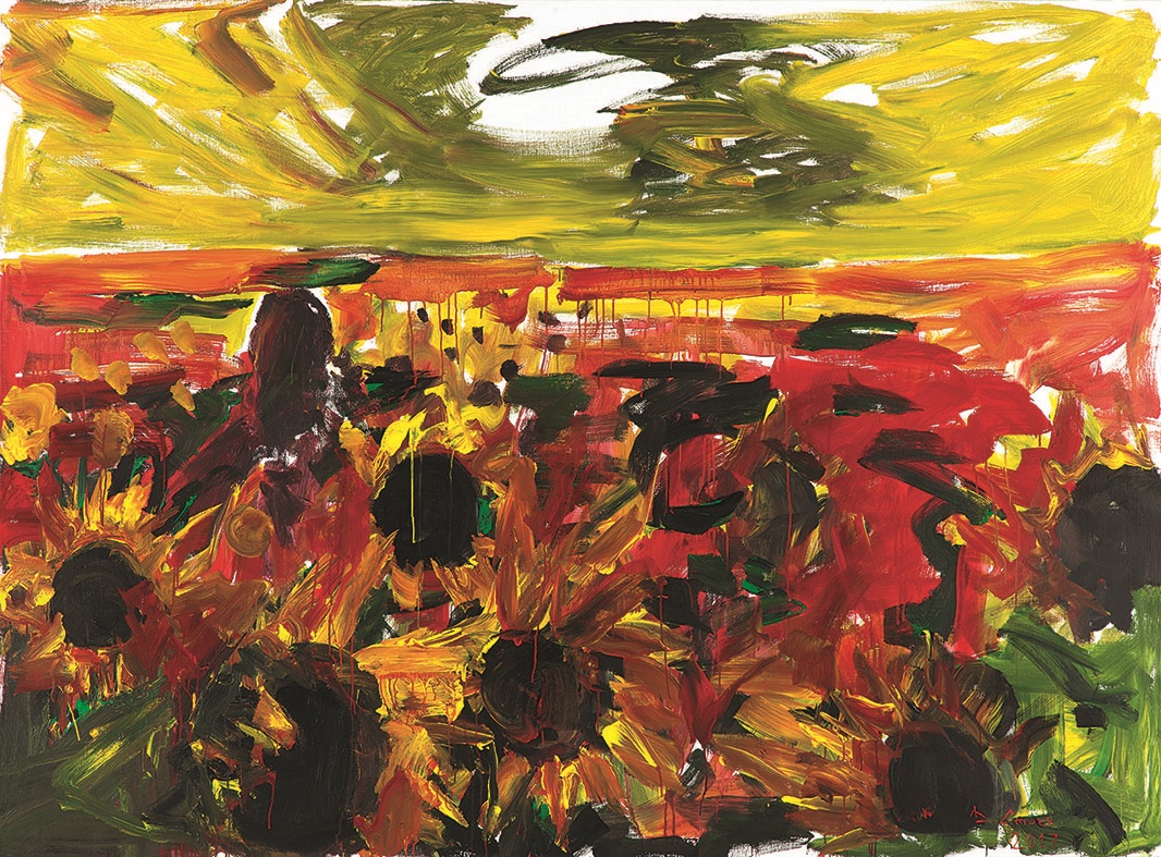 Stoev was given the opportunity to examine the collection from Dechko Uzunov’s studio and make a selection of the artist’s works, taking into consideration which of his own works he would unite them with in the current exhibition. In the process of communication and work, several creative directions emerged and were delineated—self-portrait, landscape, and composition. Dechko Uzunov’s self-portraits are placed in dialogue with a work from Dinko Stoev’s series Bite. Another parallel was sought through the comparison of a series of watercolours—natural landscapes created in the last years of Dechko Uzunov’s life, which are in dialogue with a work from Stoev’s Sunflowers series. At first glance, the two artists seem incompatible, with radically different pictorial approaches, but both are connected by a consistent graphic manner of understanding the world. Also characteristic for them is their invariable striving to convey different psychological states. These are not states that we understand as momentum, but rather existential ones that provoke reflections on the eternal search, on the path of creation, and on a kind of exploration of the self. This exhibition does not aim at contrast or comparison, but invites a different, deeper and multi-layered understanding of their respective work.